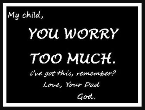 I have tendency of worrying about lots of things.  Recently, I worried about my job but God told me through prayer that "I'm the one who gave you this job and I will give you everything you need and more so don't worry".
