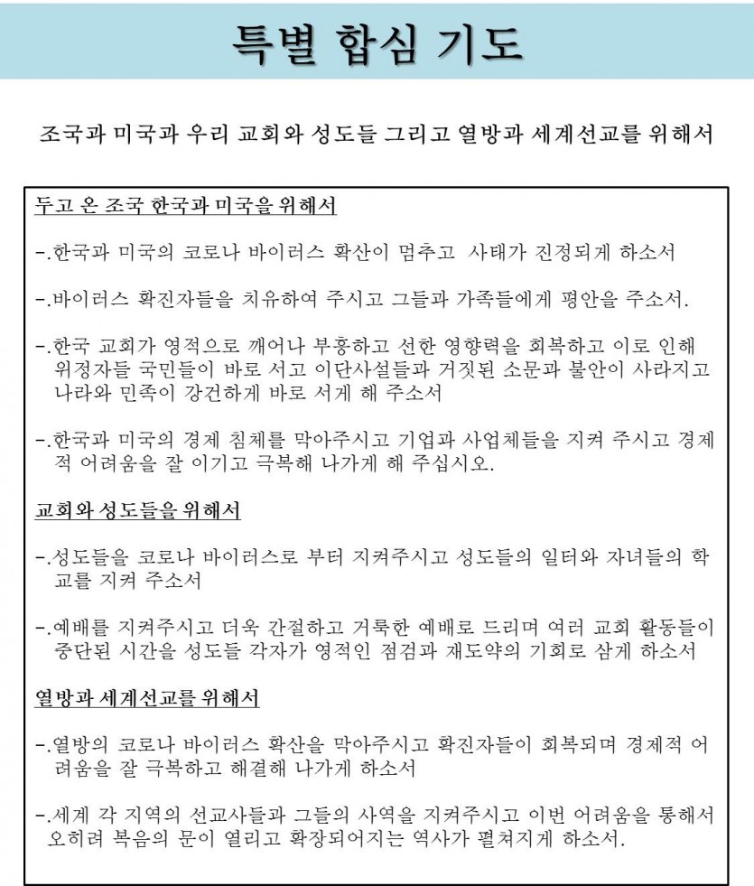 특별 합심 기도제목
