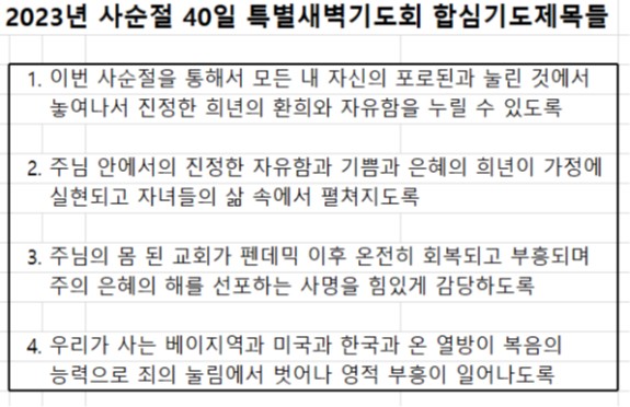 2023년 사순절 특별새벽기도회 합심기도제목들