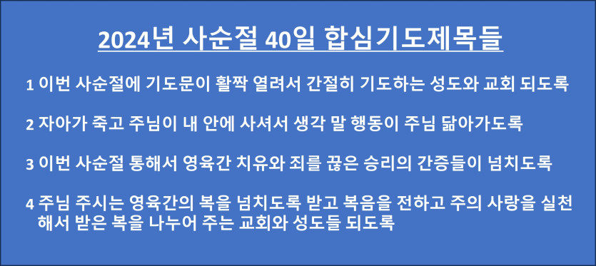 - 다음글2024 사순절 특별새벽기도회 성경구절 및 설교제목 24.02.17