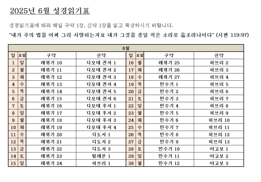 6월 성경읽기표