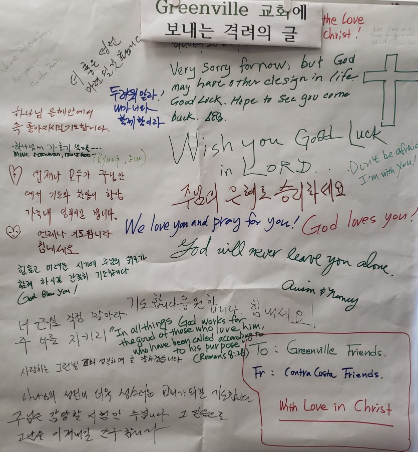 Greenville UMC에 보낸 성도들의 격려카드