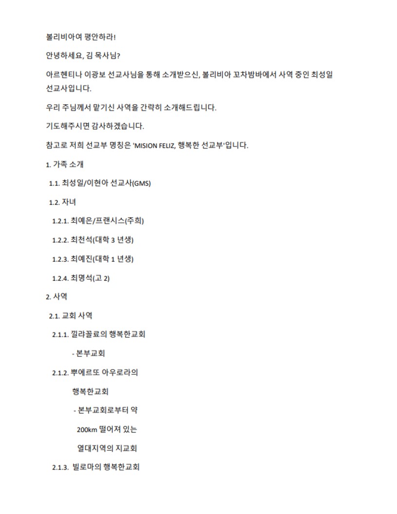볼리비아 최성일 선교사 선교소식들 2 > 선교소식