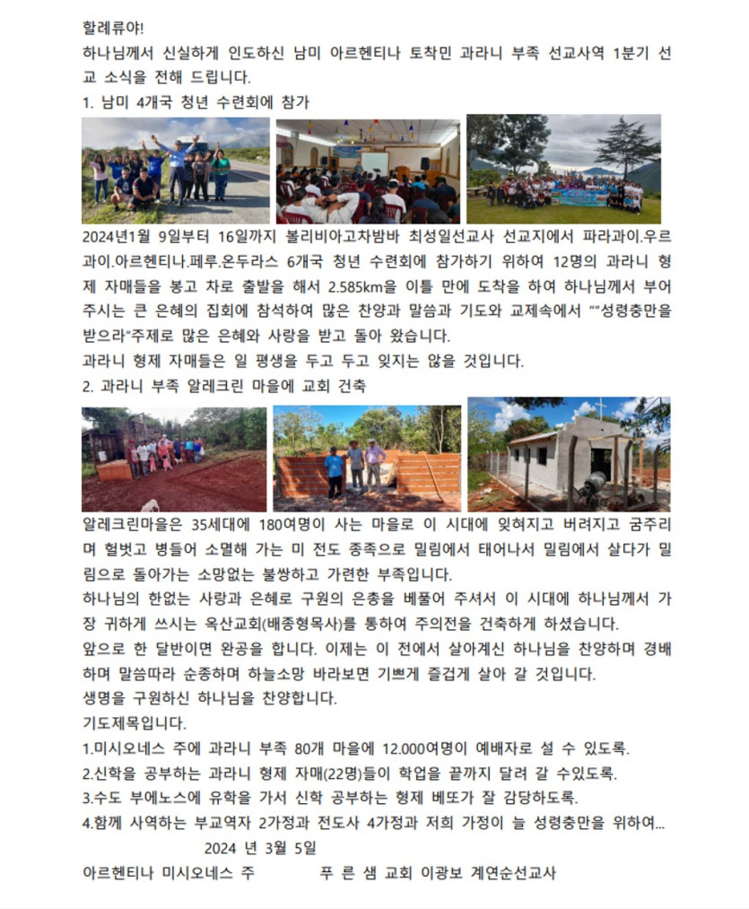 아르헨티나 이광보 선교사 2024 1분기 선교소식