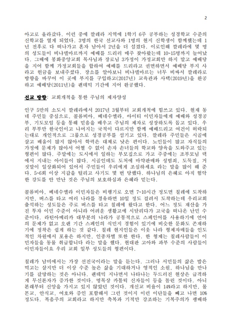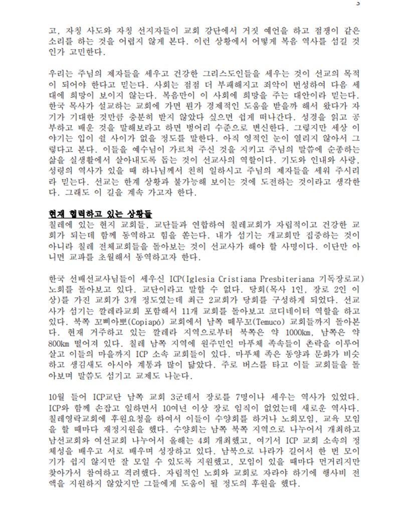 칠레 정영태 선교사 선교소식들 2