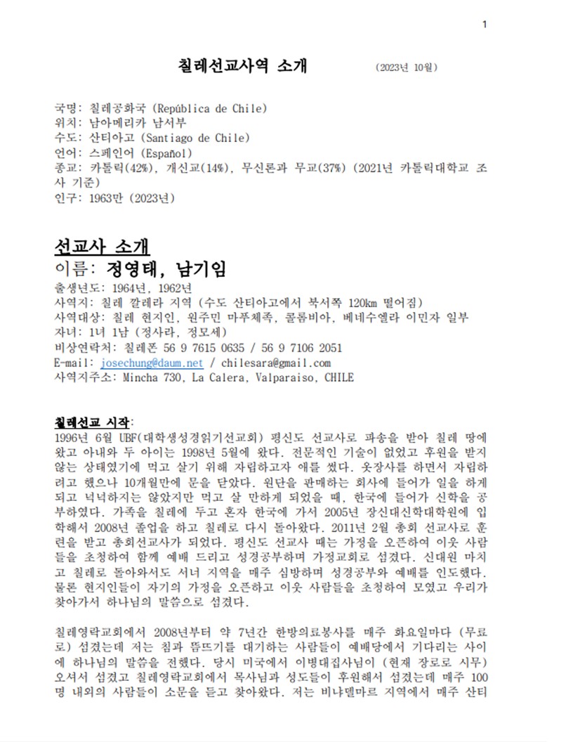 - 다음글칠레 정영태 선교사 선교소식들 2 24.03.06
