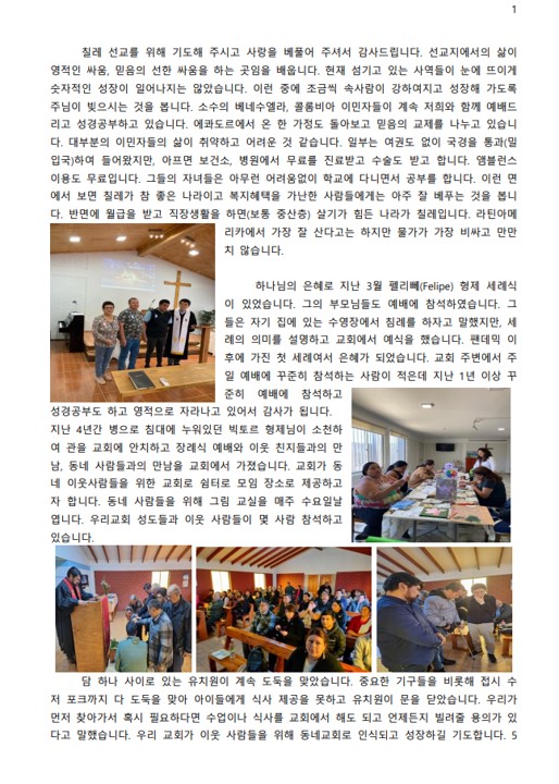 칠레 정영태 선교사 5월 선교보고