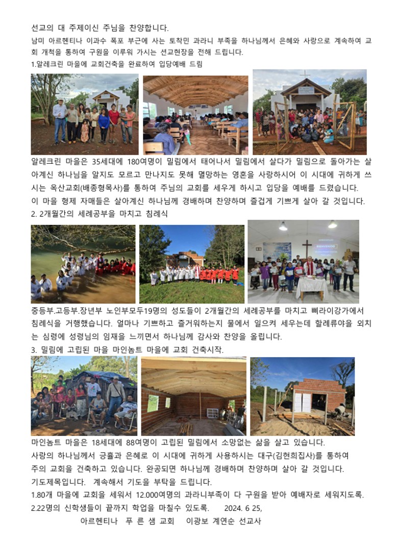 아르헨티나 이광보 선교사 2024년 2분기 선교소식