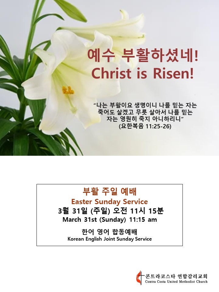 - 이전글어린이 주일학교 Easter Egg Hunt (3/31) 24.03.16