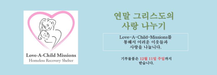 선교부 광고: 연말 그리스도의 사랑 나누기 (Love A Child 돕기)