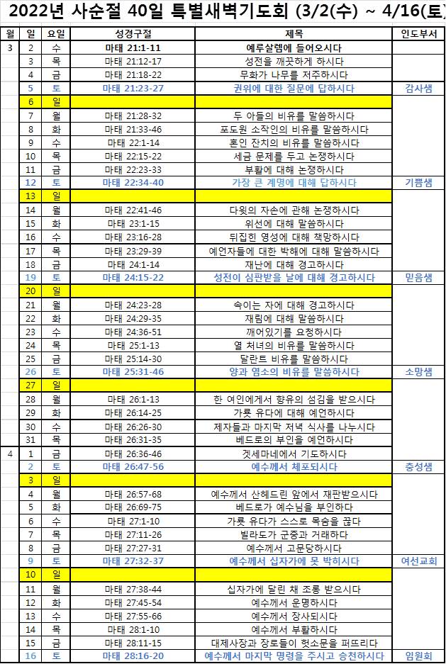 사순절 40일 특새 매일 성경구절 및 내용 > 교회소식