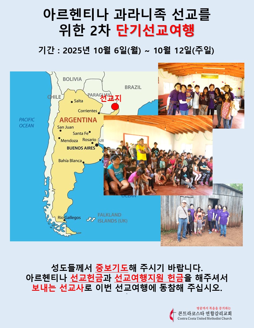 중보기도아르헨티나 선교헌금과 선교여행 지원헌금물품 도네이션