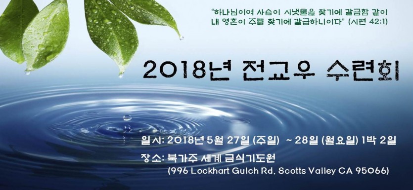 -.장소 : 북가주 세계 금식기도원 (주소 : 996 Lockhart Gulch Rd., Scotts Valley, CA 95066)