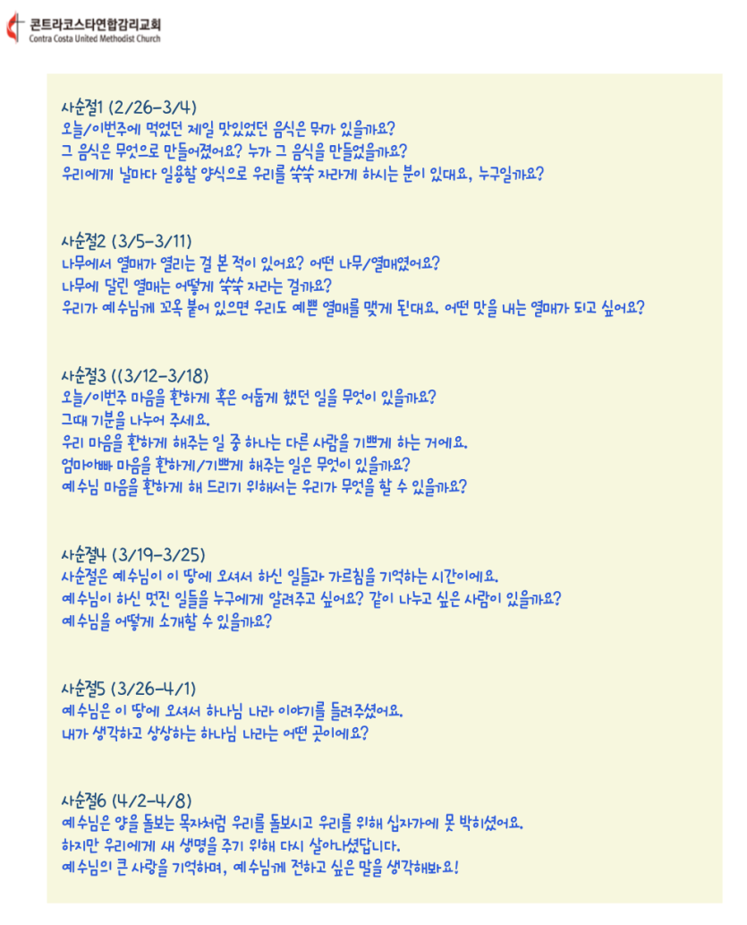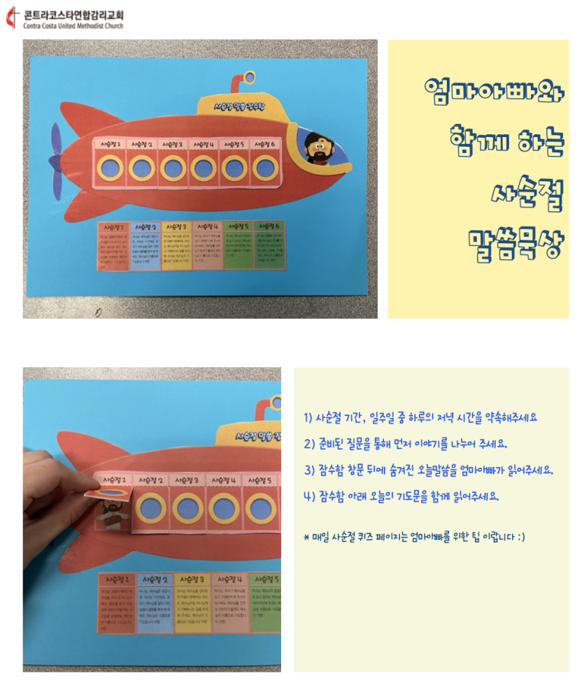 오늘 (2월26일) 가져간 사순절 말씀 잠수함과 퀴즈를 기억해주세요.