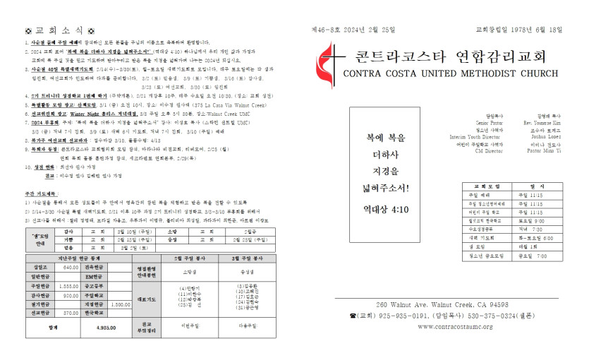 2024년 2월 25일 사순절 둘째 주일 예배 주보
