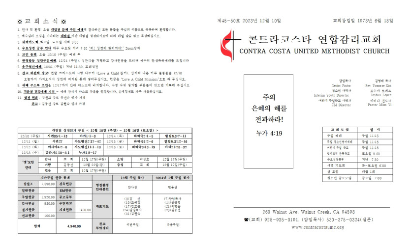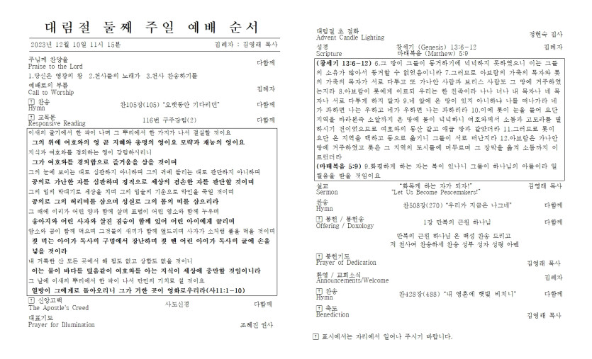 12월 10일 대림절 둘째 주일 예배 주보 > 주보