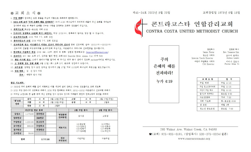 8월 20일 주일 예배 주보