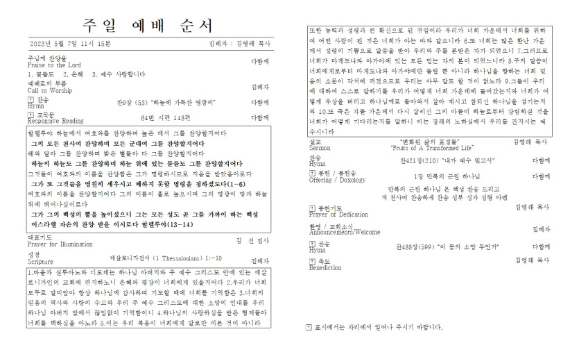 5월 7일 주일 예배 주보 > 주보