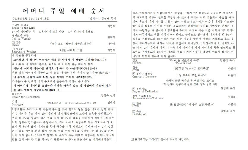 5월 14일 어머니 주일 예배 주보 > 주보