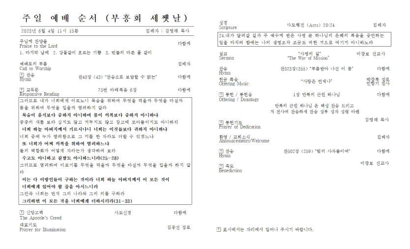 6월 4일 부흥회 주일 예배 주보 > 주보