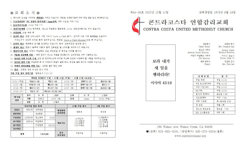 2022년 12월 11일 대림절 세째 주일예배 주보