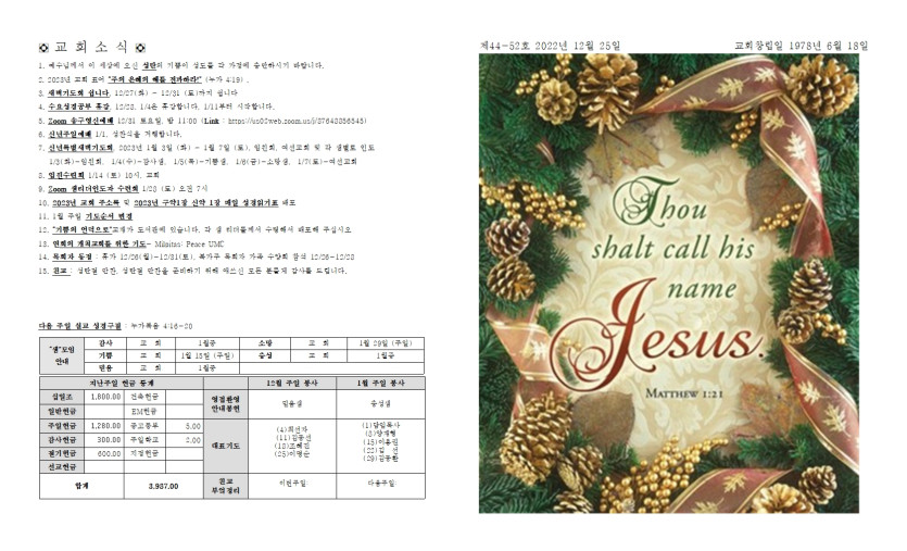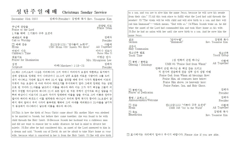 2022년 12월 25일 성탄 주일예배 주보