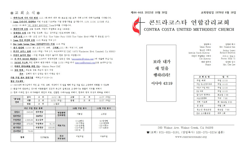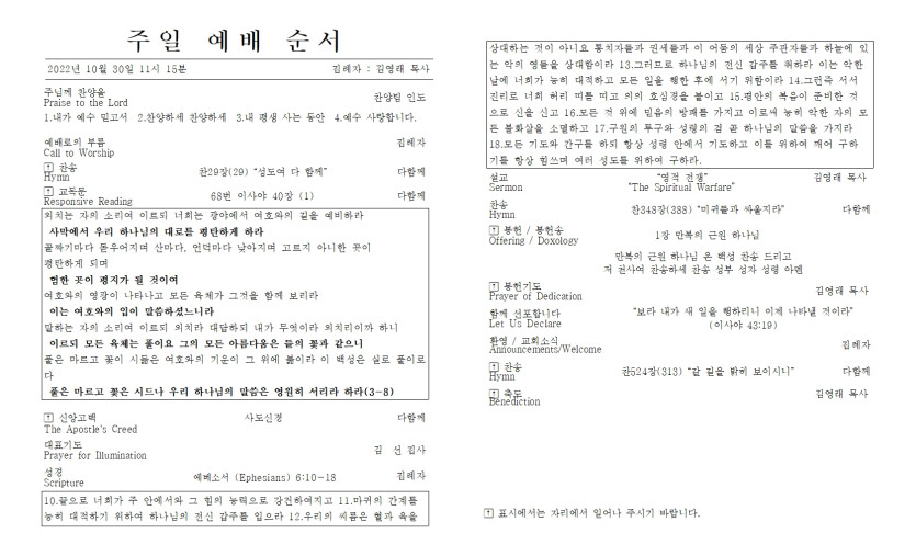 2022년 10월 30일 주일 예배주보 > 주보