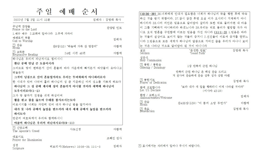 2022년 7월 3일 주일 예배주보 > 주보