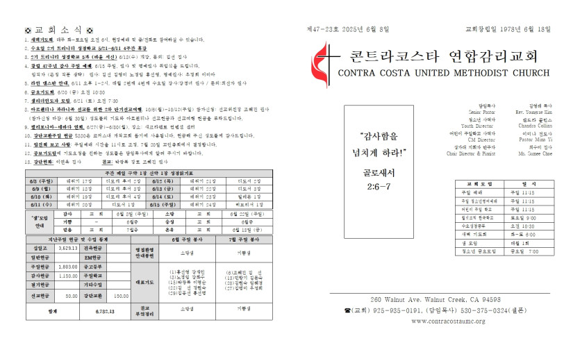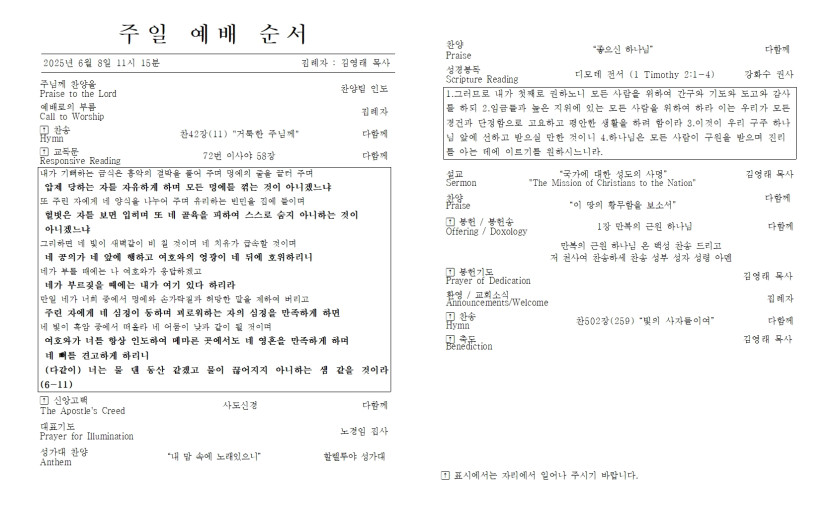 - 이전글2025년 6월 15일 창립 47주년 감사 주일 예배 및 임직식 주보 25.06.14