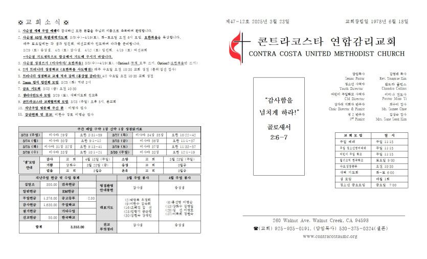 2025년 3월 23일 사순절 세째 주일 예배 주보