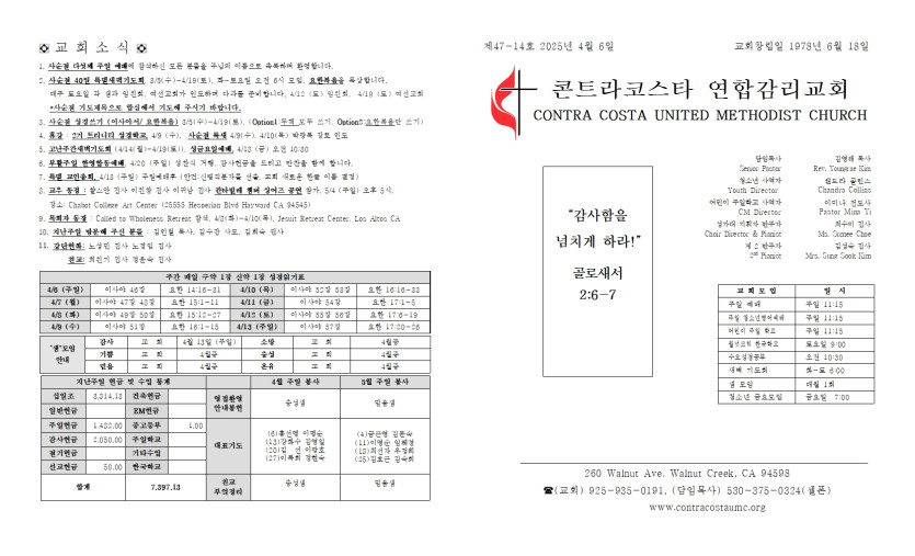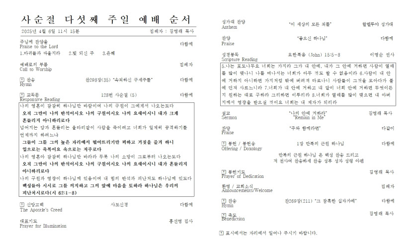 2025년 4월 6일 사순절 다섯째 주일 예배 주보 > 주보