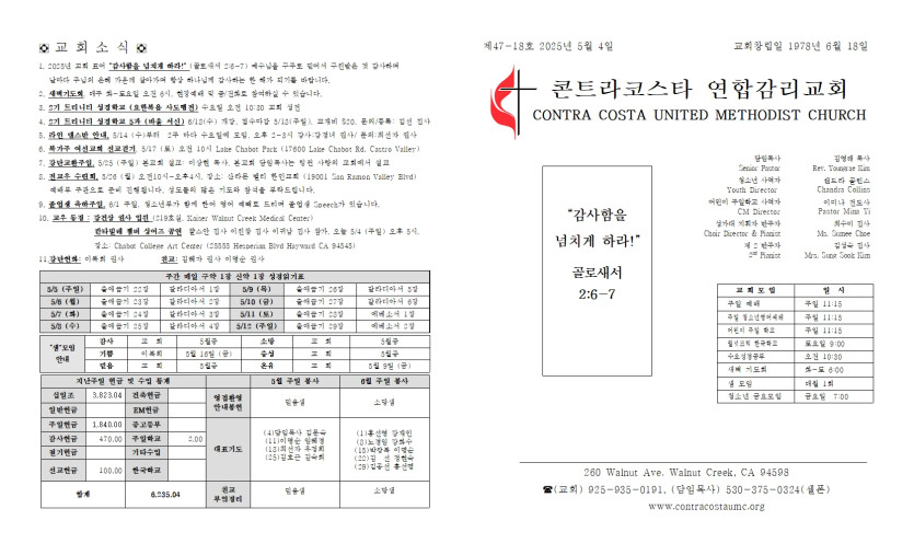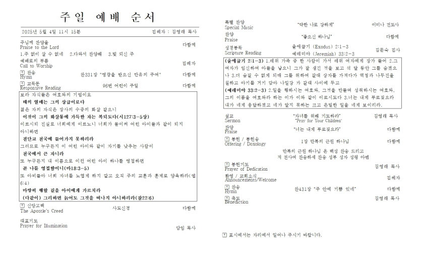 2025년 5월 4일 주일 예배 주보 > 주보
