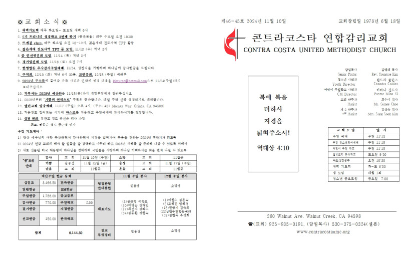 2024년 11월 10일 주일 예배 주보
