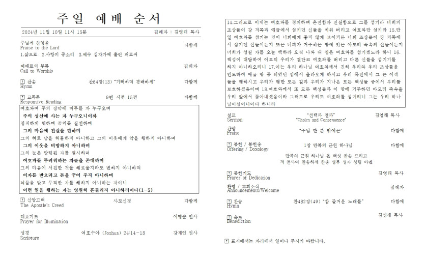 - 다음글2024년 11월 3일 주일 예배 주보 24.11.02
