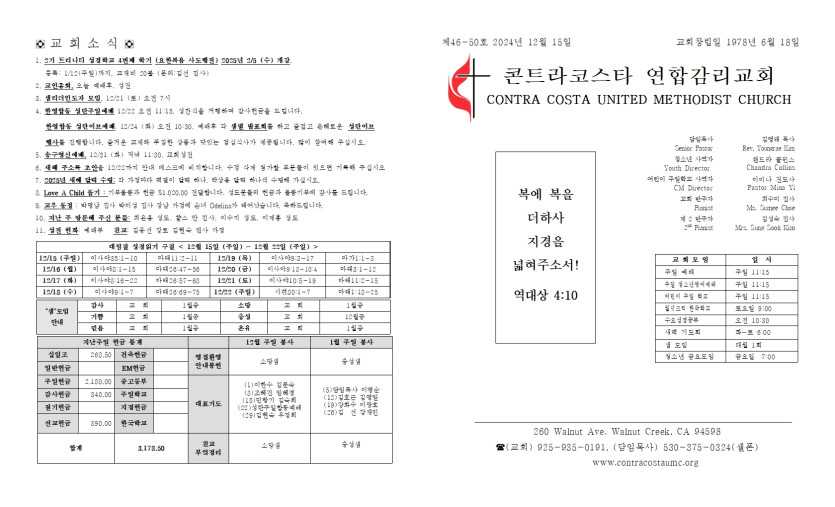 2024년 12월 15일 대림절 세째 주일 예배 주보