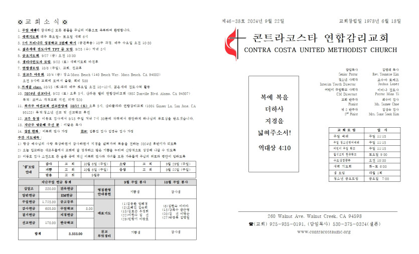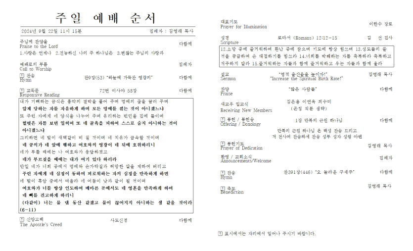 - 다음글2024년 9월 15일 주일 예배 주보 24.09.14