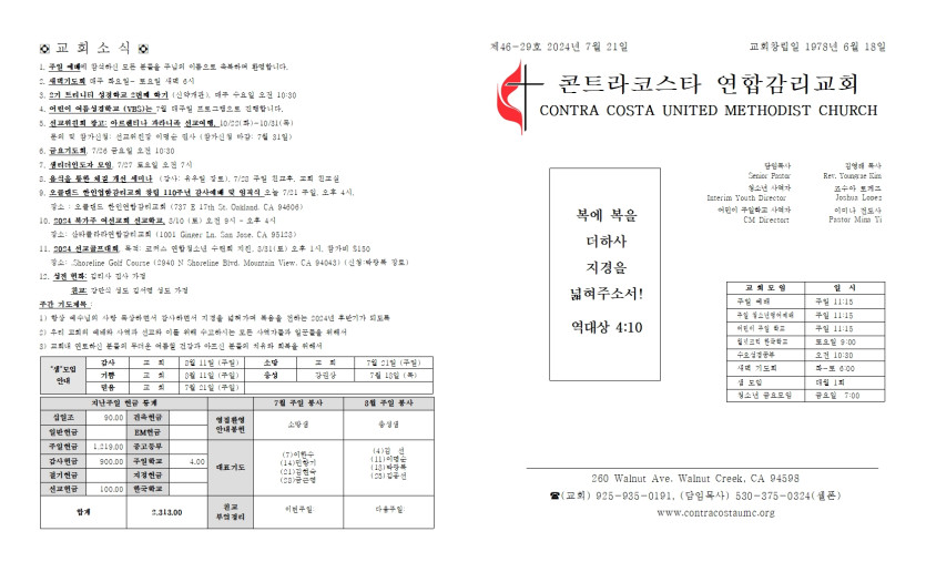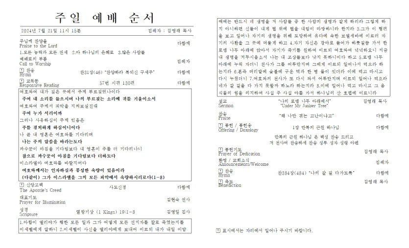 2024년 7월 21일 주일 예배 주보 > 주보
