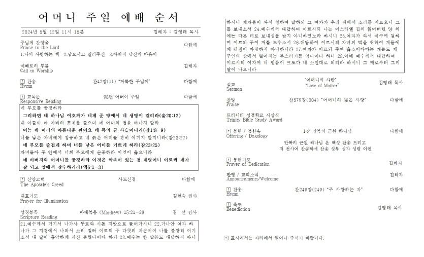 - 다음글2024년 5월 5일 주일 예배 주보 24.05.04