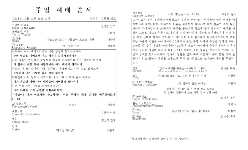 - 다음글2025년 10월 5일 주일 예배 주보 25.10.04