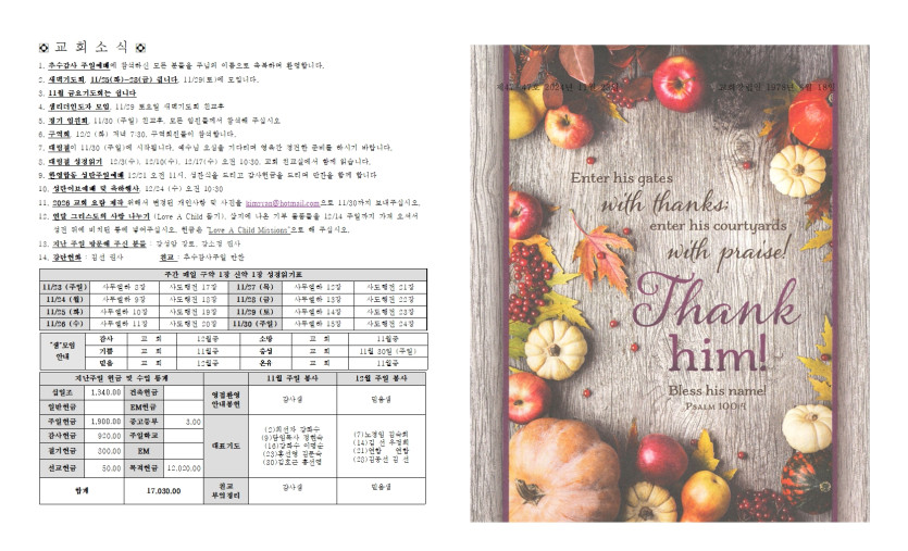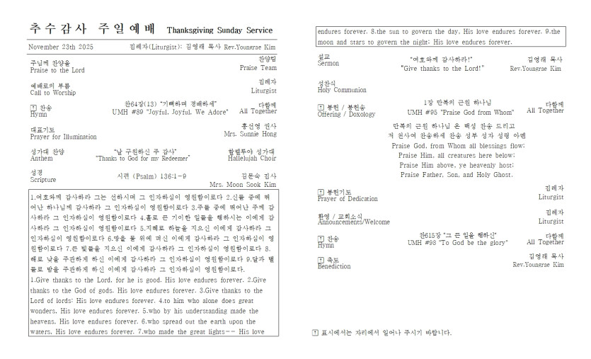 2025년 11월 23일 추수감사 주일 예배 주보